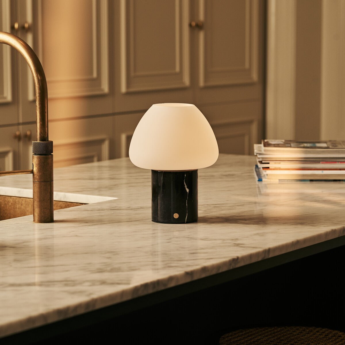 The Ostade is part of our Rijks Collection. Each table lamp is crafted from solid marble or travertine, ensuring that no two pieces are identical. The natural veining and deep color nuances give every lamp a unique and exclusive appearance.