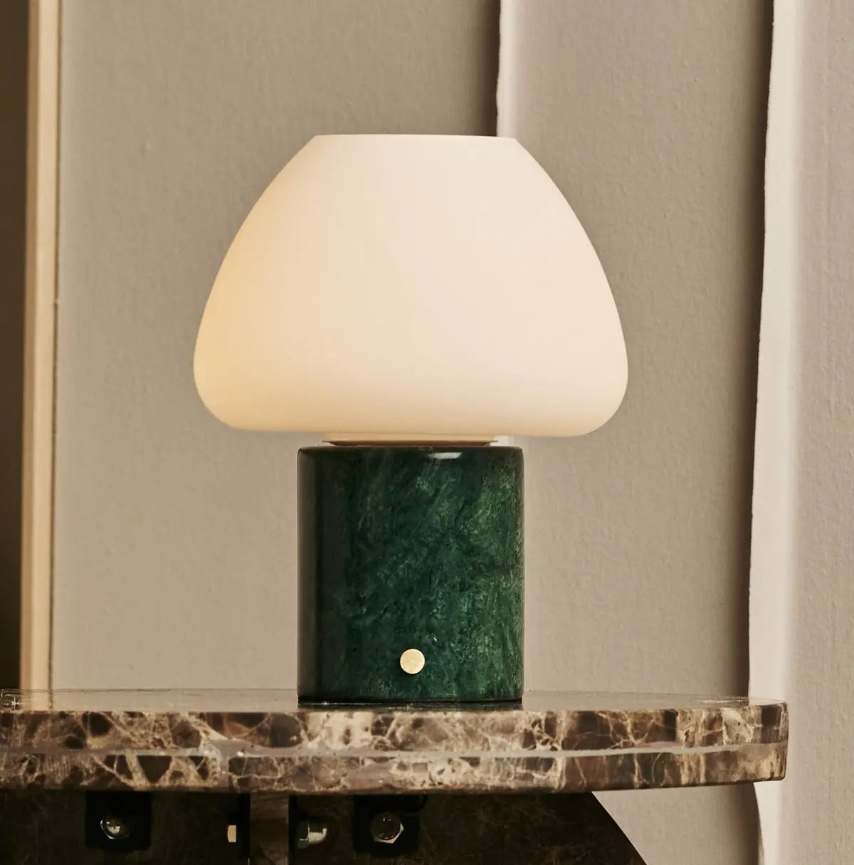 Ostade Green / Verde Alpi  – Unique Marble Rechargeable Table Lamp with 3 Light Colors & Dimming Function